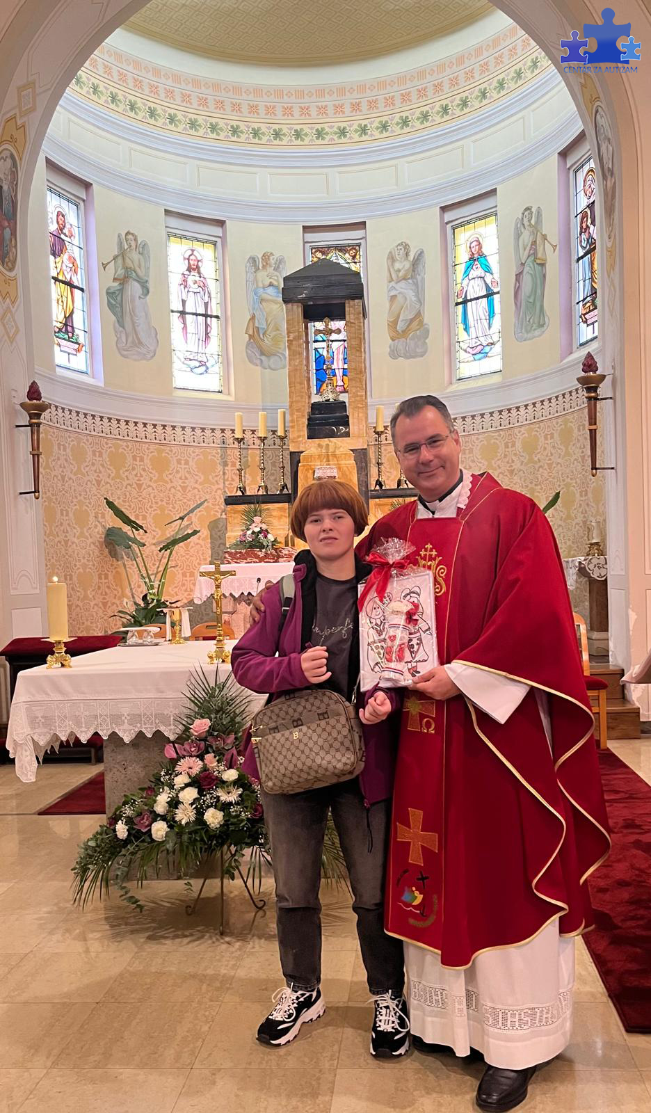 Nakon mise i zajedničkog fotografiranja oko oltara, učenica Petra, s iskrenim poštovanjem i zahvalnošću, župniku je uručila prigodan dar. Dar se sastojao od lutkice u šestinskoj nošnji, ispunjene čokoladnim pralinama Griotama, koju su s puno truda i ljubavi izradili učenici Učeničke zadruge Grana iz našeg Centra. Uz lutkicu, Petra je poklonila i vlastoručno naslikanu sliku djevojčica u šestinskoj narodnoj nošnji, čime je dar oplemenila osobnim dodirom i iskrenim izrazom zahvalnosti.