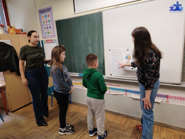 Povodom obilježavanja Svjetskog dana svjesnosti o autizmu, učenici 1. i 2. razreda, u pratnji učiteljica Anamarije i Lorene, posjetili su 1. c razred OŠ Granešina. Kako bismo se što bolje upoznali, pripremili smo edukativni plakat te smo druženje započeli zajedničkim čitanjem i komentiranjem natuknica s plakata.